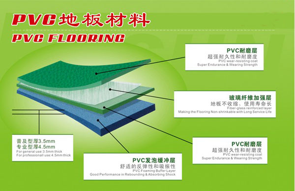 羽毛球場一般使用的面層材料有塑膠羽毛球場、PVC羽毛球場,木地板羽毛球場等。其中使用PVC地板最為普遍。