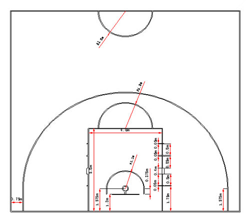 二、籃球場尺寸為:長28米,寬15米,線寬0.05米,籃球場的丈量是從界線的內(nèi)沿量起。
