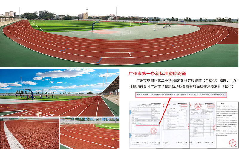 14)全場顏色鮮艷,均勻一致無色差,保證六年內(nèi)不褪色。噴粒面均勻,無氣泡、不分層、不脫粒、不脫膠,與基層粘結(jié)牢固。表面干凈,接縫平順無痕跡。