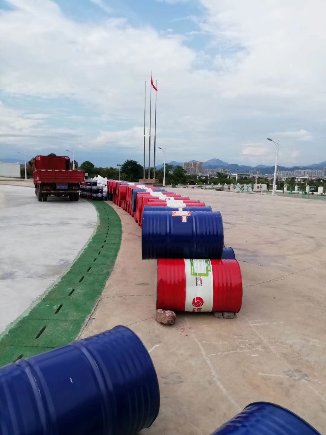 (4)表面顆粒噴涂:將PU面漆(BSPM0423)混合EPDM橡膠顆粒(抗老化,耐色變之全天候EPDM顆粒)用專用噴涂機(jī)均勻噴撒在黑色橡膠基層之上表面(噴涂2-3次),務(wù)必使顆粒層平整均勻;面漆包裹住EPDM顆粒,以使場(chǎng)地更加耐用。 (5)劃線:用BSJX0451白色面漆,依設(shè)計(jì)尺寸噴涂體育線,保證線寬一致,色澤均勻,無虛邊出現(xiàn)。 3、施工方法 (1)13mm透氣式塑膠跑道鋪設(shè)施工工藝是采用兩步施工法進(jìn)行鋪設(shè)的。底層黑膠粒層,攤鋪厚度為10-11毫米,將其固化后,在黑色橡膠粒層再噴涂厚度為2-3毫米的EPDM膠粒同面漆的混合層。 工藝簡(jiǎn)圖: 清掃場(chǎng)地 → 防水底漆涂布→粘結(jié)層涂布 → 黑膠粒底層攤鋪 →固化 →面層配料 → 混合攪拌 →面層噴涂→ 測(cè)量畫線 →檢測(cè)點(diǎn)線 →竣工。 (2)施工方案的說明 ① 配料、攪拌: a. 施工隊(duì)進(jìn)場(chǎng)后,首先清點(diǎn)所有材料的品種及數(shù)量,列出清單,并交監(jiān)理簽字。 b. 檢查攪拌機(jī)、推料車等機(jī)械設(shè)備是否運(yùn)轉(zhuǎn)正常,發(fā)現(xiàn)問題及時(shí)修理。對(duì)現(xiàn)場(chǎng)的材料進(jìn)行抽查檢驗(yàn),每個(gè)批號(hào)做一塊測(cè)試試片。發(fā)現(xiàn)材料變質(zhì)、變色應(yīng)停止使用。如有沉淀,使其均勻。 c. 配料時(shí)要保持配料區(qū)域的清潔衛(wèi)生,粘有膠液的雜物不可亂丟亂放,以免污染環(huán)境。 d. 配料人員要認(rèn)真清點(diǎn)原材料的品種、型號(hào),確認(rèn)與施工現(xiàn)場(chǎng)所需材料相同,才能將材料推上放料架,排列整齊,桶口向下備用。 e. 放料時(shí)首先放出桶內(nèi)氣體,再打開桶口,將膠液放入干凈的倒料桶內(nèi)。 f. 黑膠粒底層控制在10-11mm,施工配比:預(yù)聚體∶黑膠粒=1∶6。催化劑適量,視氣溫變化而變化,一般為預(yù)聚體的千分之二。 g. 甲乙組混合配比時(shí),要分先后次序,首先將甲組倒入干凈的攪拌桶內(nèi),再按配方要求倒入比例的乙組。但注意倒料時(shí),甲乙組任何一種膠液都要倒入攪拌桶底部中心位置,不能拖掛、飛濺,殘留到攪拌桶的邊緣,以免生膠倒入施工現(xiàn)場(chǎng),造成惡果。 h. 將配好的甲乙組膠液作均勻攪拌,待其攪拌均勻后加入配方定量的催化劑,繼續(xù)攪拌,待均勻后再加入黑膠粒進(jìn)行攪拌,均勻后,停止攪拌,此膠液可送入施工現(xiàn)場(chǎng)進(jìn)行鋪設(shè)。整個(gè)攪拌過程不可時(shí)間過長(zhǎng)或過短,一般在2~3分鐘為好。并做好配料桶次的記錄,以便統(tǒng)計(jì)材料的用量。 i. 配料過程中要按照配方執(zhí)行配料,任何人不得更改材料配比,不得加入任何溶劑或任意加減催化劑數(shù)量。 j. 配料速度要準(zhǔn)確、快捷,保證施工地點(diǎn)材量用量,使其不能有過長(zhǎng)的間隙,以免出現(xiàn)未鋪設(shè)好的情況下就出現(xiàn)材料固化的情況,影響質(zhì)量。 k. 配料結(jié)束后認(rèn)真清理現(xiàn)場(chǎng)衛(wèi)生。 ② 底膠鋪設(shè): a. 鋪設(shè)底材之前先將地基基礎(chǔ)清掃干凈,準(zhǔn)備好施工用的工具,按施工圖紙要求的厚度調(diào)試好機(jī)器的及它的厚度。 b. 按照工程情況合理分好施工板塊,測(cè)量出施工線的位置,放好施工線。鋪設(shè)過程中要保持橡膠粒的厚度一致,接邊、接頭無痕跡。 c. 底材鋪設(shè)這前,先將地基基礎(chǔ)凹陷嚴(yán)重的位置用底膠加黑顆粒刮平,凸起的位置將其打掉使其平整。 d. 鋪設(shè)底膠之前先將地基基礎(chǔ)清掃干凈后在基礎(chǔ)面上涂一層予巨體方可鋪設(shè)。一邊刷一邊鋪黑膠粒層。當(dāng)膠固化后再鋪設(shè)黑膠粒層會(huì)影響粘結(jié),不宜大面積涂膠后,再鋪黑膠粒層,應(yīng)做到涂粘結(jié)層多少面積,應(yīng)立即鋪多少面積的黑膠粒層。 e. 鋪設(shè)過程中,鋪設(shè)人員要保證機(jī)器行走速度均勻,修邊人員要?jiǎng)幼魇炀殻皶r(shí)對(duì)露底、凹陷處進(jìn)行補(bǔ)膠,凸起的部位刮平,邊緣整齊平整。修邊人員不少于兩名。 f. 鋪設(shè)的黑橡粒怪固化后,對(duì)全場(chǎng)進(jìn)行檢查,發(fā)現(xiàn)邊緣不整齊或有凹凸之處,要進(jìn)行削割、打磨、補(bǔ)膠和修整處理,以保證面膠鋪設(shè)的厚度。 ③ 跑道面膠的噴涂: a. 待黑膠粒層固化成形后,方可在其表面噴涂膠漿層(一般為紅色)其配比為:EPDM膠!肞U漿料=1∶1.2。首先將PU漿料按比例配料加入適量的崔化劑混合攪拌均勻,在攪拌過程中加入EPDM膠粒, EPDM粒徑按要求選取,一般在0.5~1mm左右。然后將料倒入專業(yè)噴涂器噴涂在黑膠粒層表面。噴涂時(shí)可根據(jù)膠漿的稀綢度加入適量稀料。噴涂次序均勻噴涂?jī)杀椤? b. 噴膠人員施工前要計(jì)算好膠液用量,每一桶膠液所刮膠的長(zhǎng)度,做好標(biāo)記,做到心中有數(shù),合理利用材料。 c. 運(yùn)料動(dòng)作要干凈、快捷,倒料時(shí)分多次倒下,桶邊的余料及時(shí)清理,保持桶外清潔,為噴膠人員創(chuàng)造良好的條件。 ④ 工藝線的測(cè)量、噴劃: a. 專業(yè)技術(shù)人員對(duì)場(chǎng)地進(jìn)行測(cè)量,所使用的經(jīng)緯儀、鋼卷尺等都需經(jīng)過國家級(jí)檢測(cè)部門檢測(cè)合格的方可使用,準(zhǔn)確計(jì)算溫改、尺改,確保測(cè)量的準(zhǔn)確性,各標(biāo)志線的位置距終點(diǎn)線的距離長(zhǎng)度不允許出現(xiàn)負(fù)差,正差一定小于1/10000